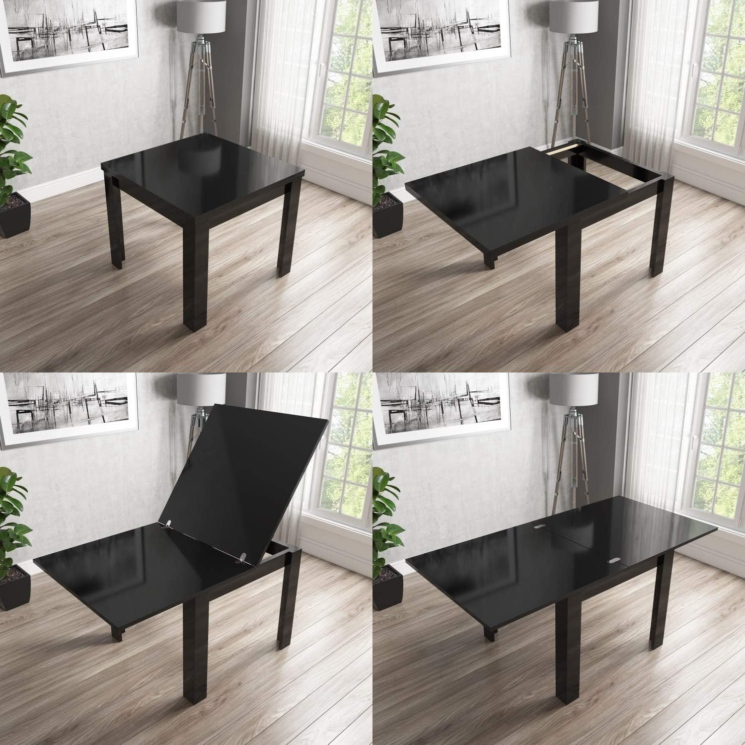Identify the way in which black high gloss dining tables and chairs is likely to be put to use.