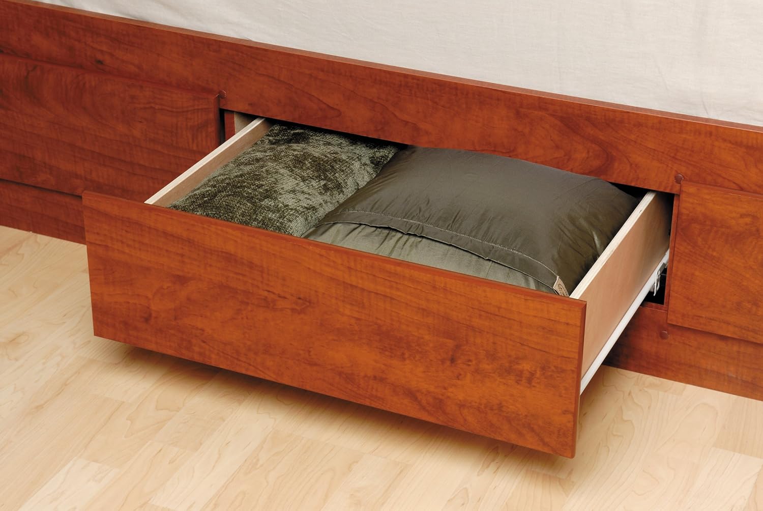 Prepac mate's platform storage bed with 6 drawers, queen, cherry. Use the six 18 deep drawers (three on each side) included in this mate's bed to stow away blankets, linens and anything else that won't quite fit into your other bedroom furniture, and conserve floor space while you're at it. Prepac queen mates platform storage bed with 6 drawers, drifted gray. You won't need a box spring, either, Your purchase includes one prepac platform storage bed with 6 drawers, in king size | mattress not included | not originally designed to work with headboards | item may ship in more than one box and may arrive separately.